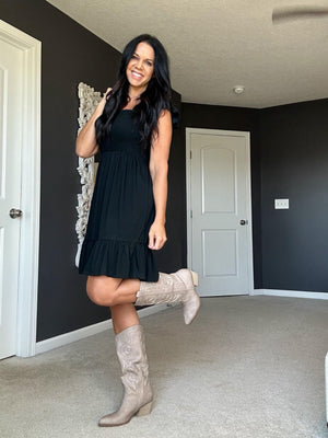 2025 Summer Casual Sleeveless Square Neck Smocked Ruffle Dress